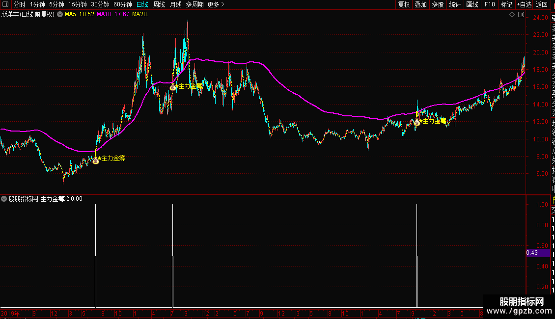主力金筹主图源码如下:
