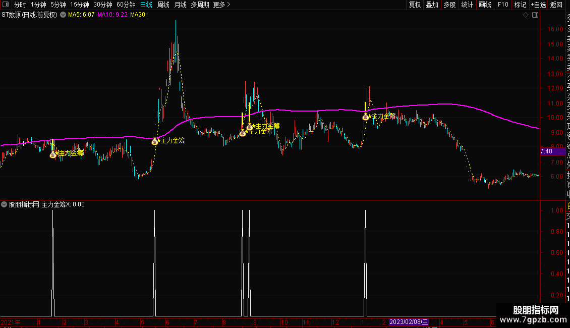 金筹线:EMA(ZBGS3,200)*1.118,LINETHICK2,COLORFF00FF;