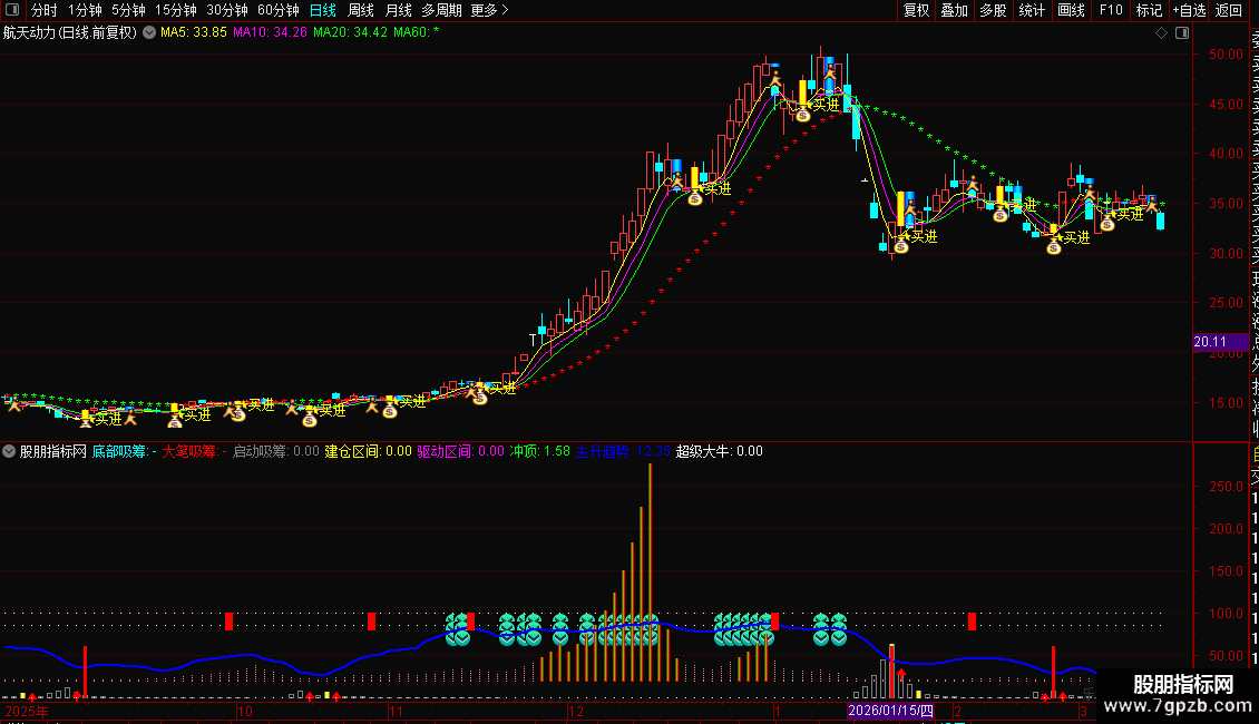 启动吸筹主图指标源码如下