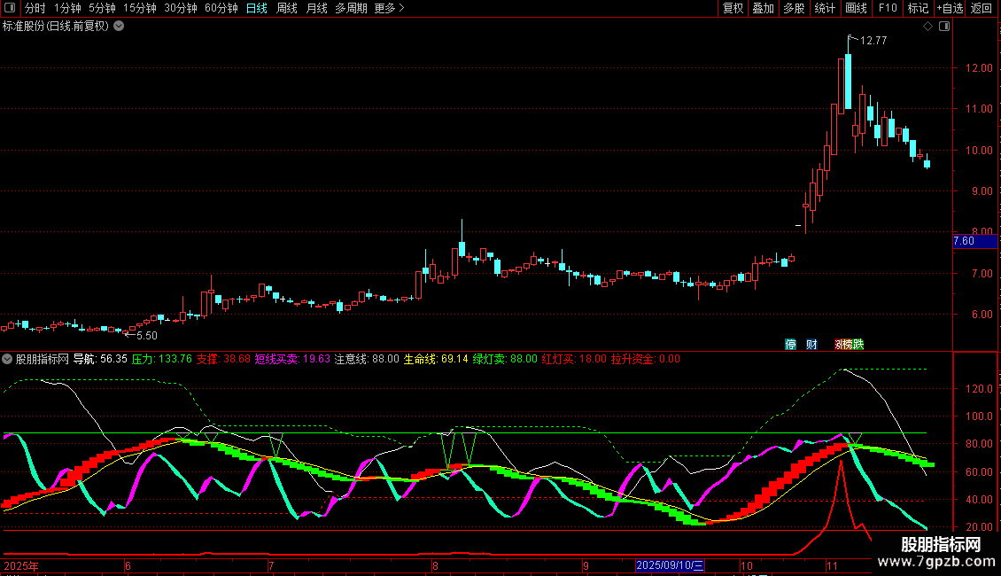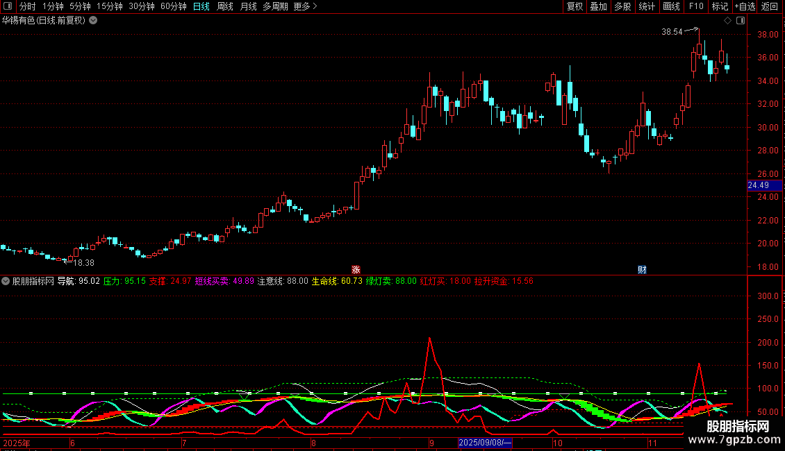 指标是一个综合性技术分析工具,融合了多空导航、支撑压力、短线买卖、中线波段和资金动能信号。