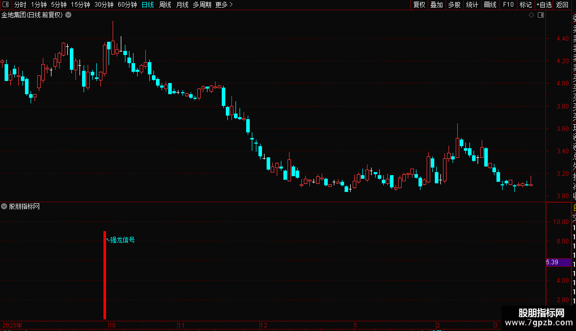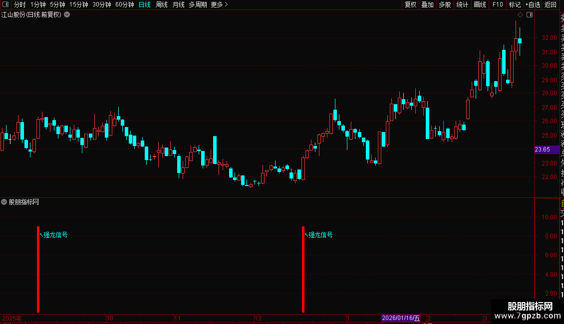 1. 副图版:出现蓝色柱体+黄色“强龙信号”,代表个股短期强势启动;出现紫色柱体+粉色“★双轨擒龙”,为核心买入信号;