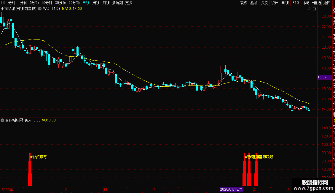 正式拉升:=MA(ZBGS4,5),COLORMAGENTA,LINETHICK2;