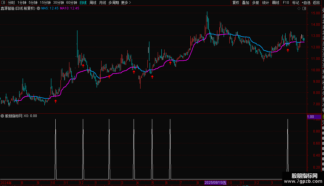 操作策略:只有当股价站稳趋势线之上,且短线指标在低位形成黄金交叉时,才发出买入信号。这旨在确保只在上升趋势的回调低点介入,避免在下跌趋势中盲目抄底,追求高胜率的反弹行情。