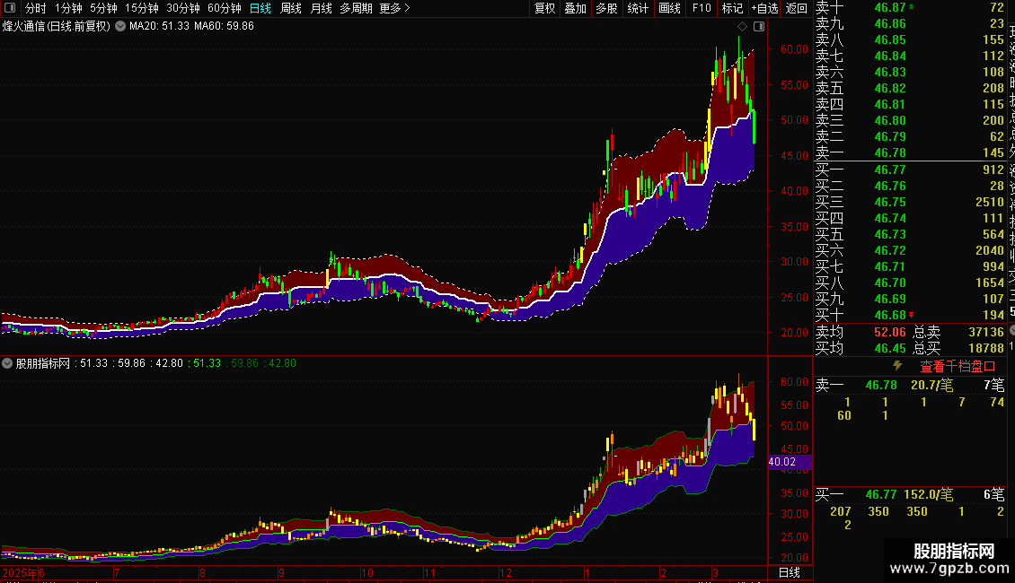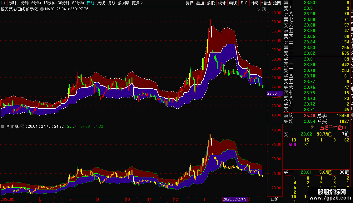 DRAWBAND(上轨,RGB(100,0,0),中间,RGB(45,0,140));