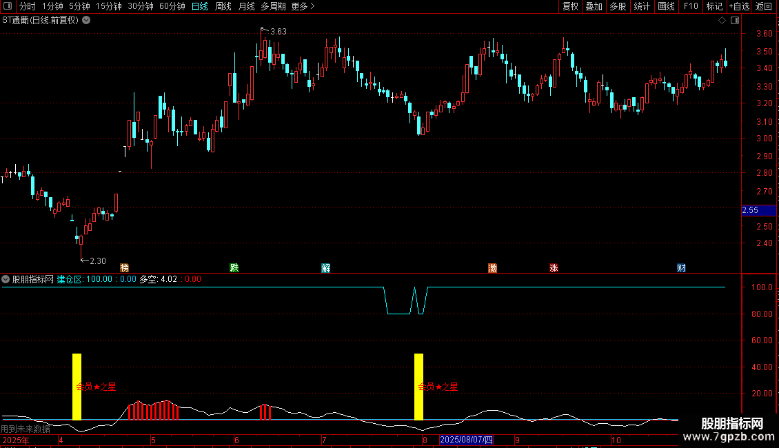 “会员★之星” 文字信号,可作为重要的右侧买入参考点。