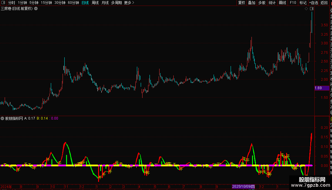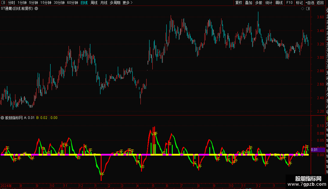 IF(A>=REF(A,1),0,DRAWNULL),COLORFF00FF,LINETHICK6;