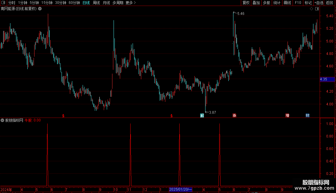 牛股:COUNT(AA,30)=30 AND V1>REF(V1,1)COLORRED;