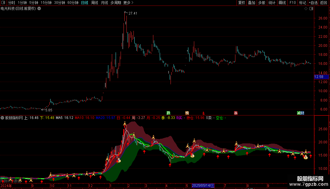 1. 布林通道:以20日均线为中轨,上下2倍标准差为带,直观显示价格波动区间。