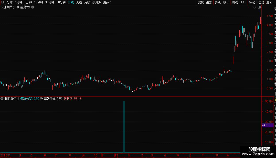 明日涨停价:ZTPRICE(CLOSE,0.1),NODRAW,COLORWHITE;