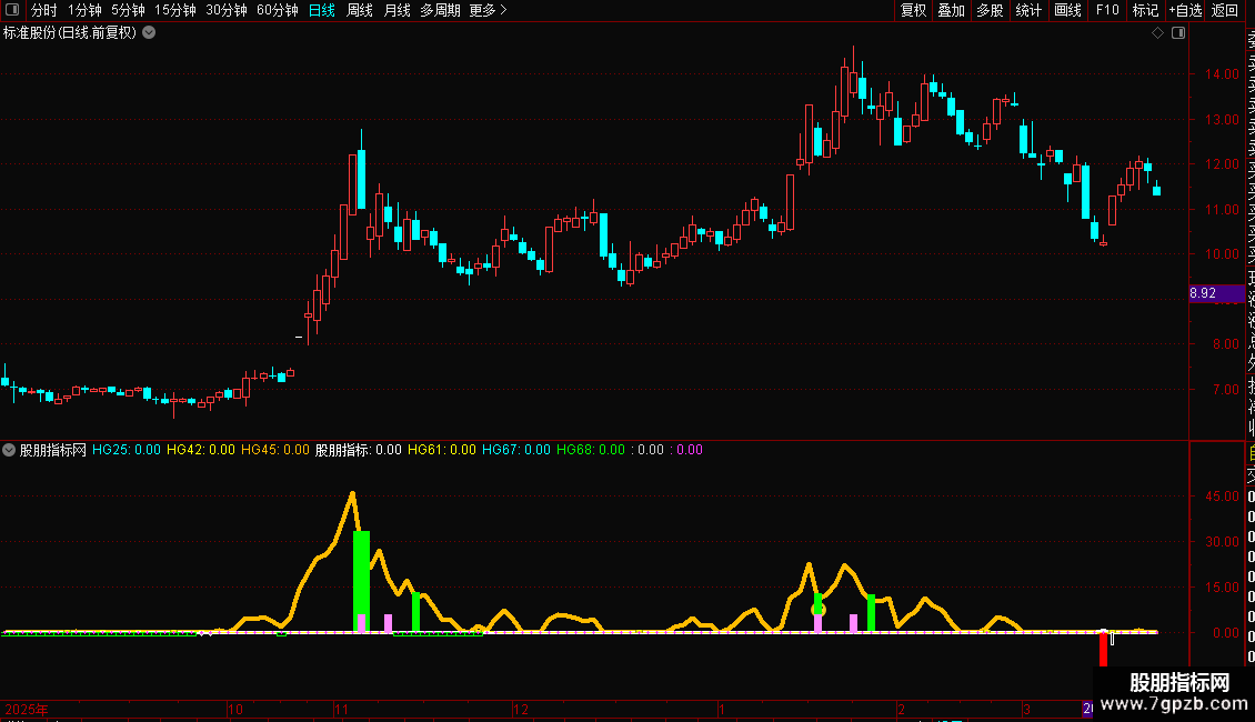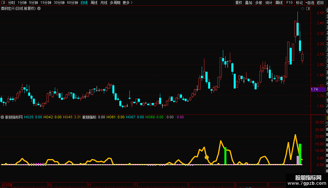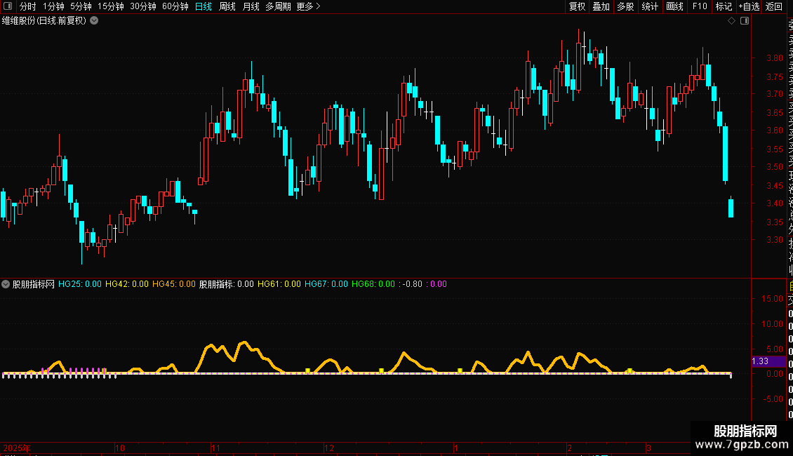 股朋指标:VARG41< -9 AND VARG41> REF(VARG41,1) ,LINETHICK3,COLORWHITE;