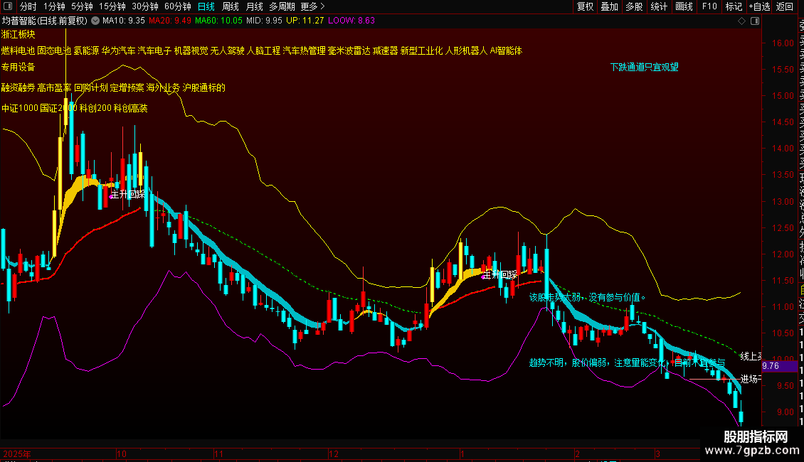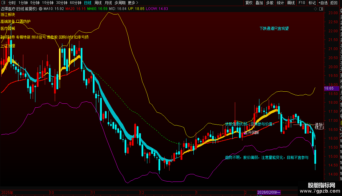 双轨布林增强:不仅显示标准上下轨,更增设极值轨道,直观识别股价超买超卖区域。