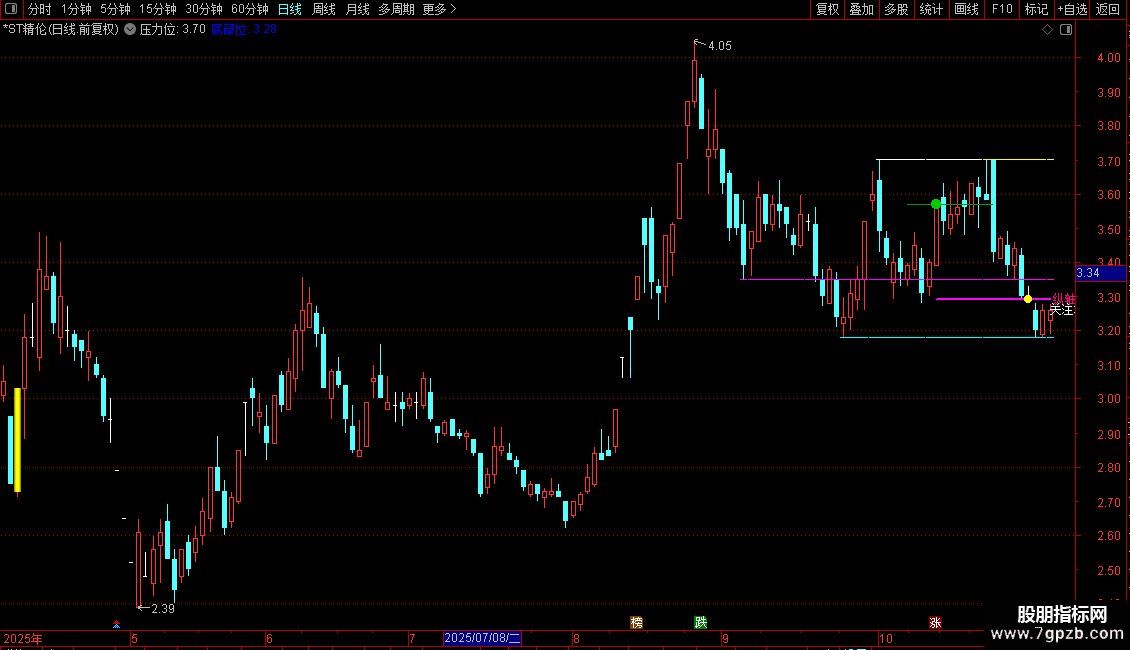 计算并显示动态的“压力位”和“底部位”。