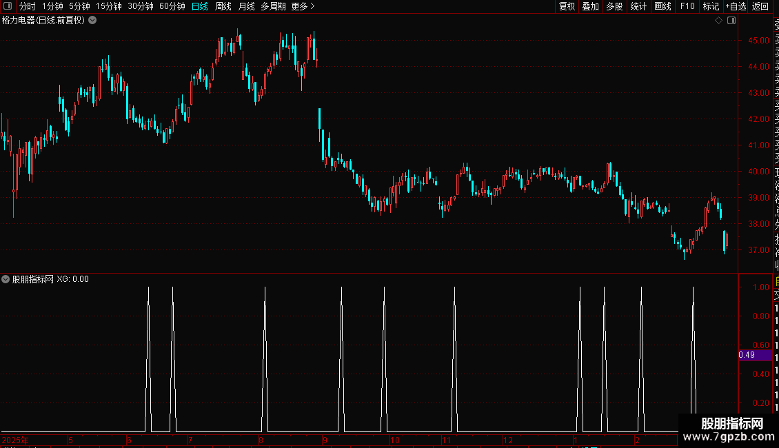 核心逻辑是:首先计算一个综合价格(最高、最低、收盘价的平均),并评估其短期均值偏离度,形成一个反映市场情绪的震荡指标。然后,通过多重平滑处理,得到两条关键的趋势线,当较快的趋势线上穿较慢的趋势线或保持强势状态,且前一周期处于超卖区域时,视为初步信号。同时,它还结合了经典的KDJ随机指标体系,判断价格是否处于相对低位。最终,在上述两个体系均发出积极信号时,确认为买入点。