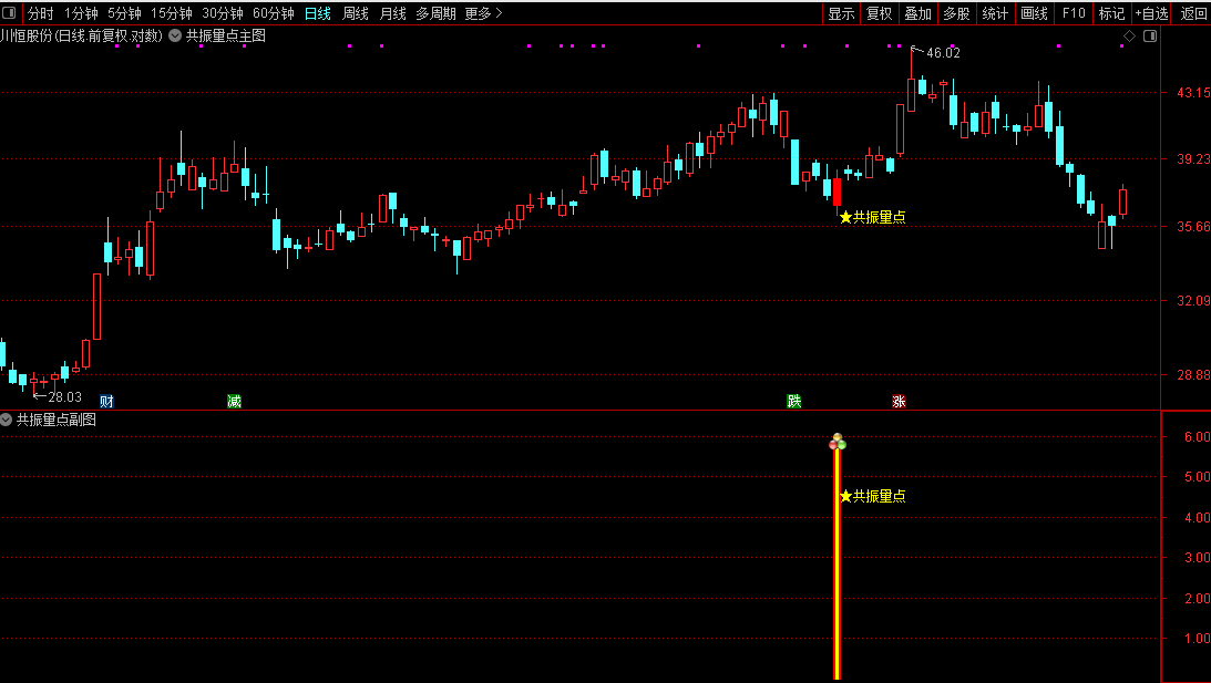 通达信【共振量点】主副图/选股短期急跌进入超卖状态后企稳反转源码