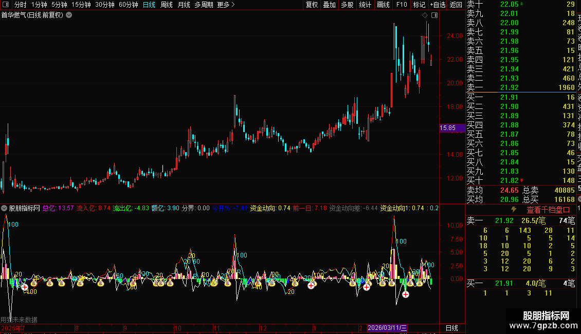 1. 该指标以亿元为单位量化资金进出,通过颜色柱体直观展示主力资金动能强弱;