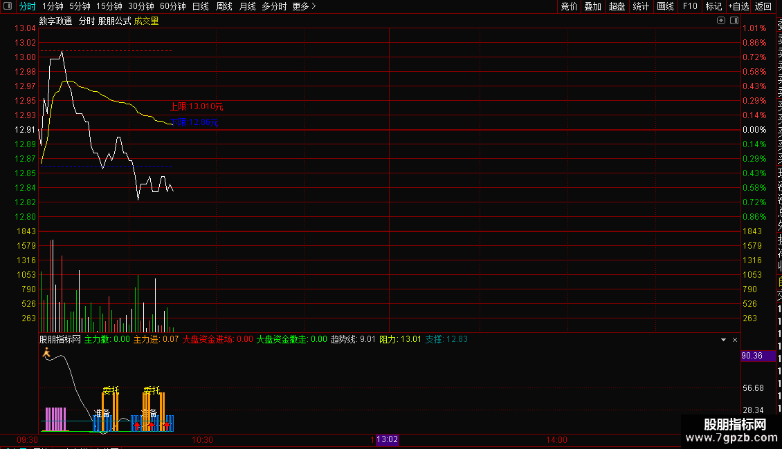 指标主要用于分时图做T交易,核心功能是监控主力与大盘资金流向,并识别超买超卖点。操作策略上:当出现“准备”或“委托”信号且趋势低位拐头时,结合支撑位买入;当显示“见顶清仓”信号或股价突破阻力位时,果断卖出止盈。同时参考主力资金红绿柱变化,顺势跟随主力进场,避开资金撤离场。