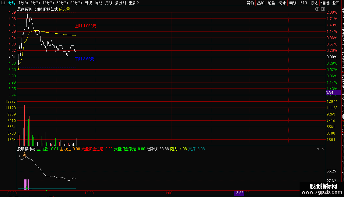 主力撤: IF(V4<=0,V4,0),COLORGREEN;