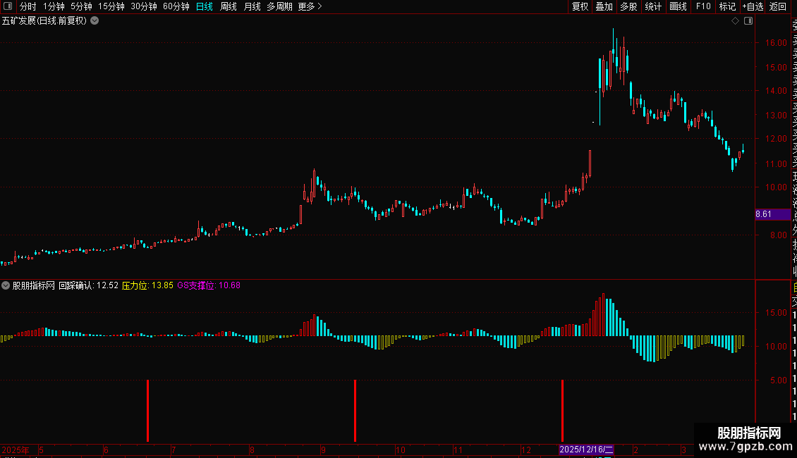 本套回踩确认指标包含副图与选股公式,无未来函数,信号稳定不漂移。指标专注个股底部回踩反转走势,直观展示支撑位、压力位参考区间,搭配红柱与回踩确认信号提示,清晰识别阶段底部企稳机会。使用简单易懂,可辅助判断趋势反转节点,为交易提供稳定参考。