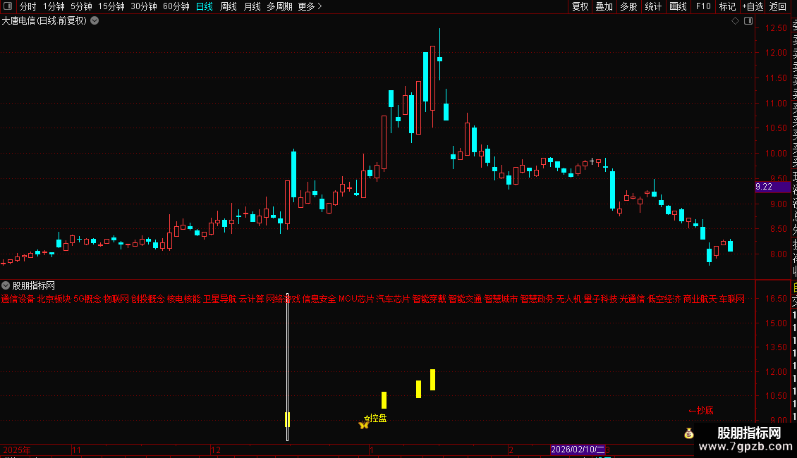 DRAWTEXT(BARSLASTCOUNT(X_CQ)=1,1.097*H,'←抄底'),COLORRED;