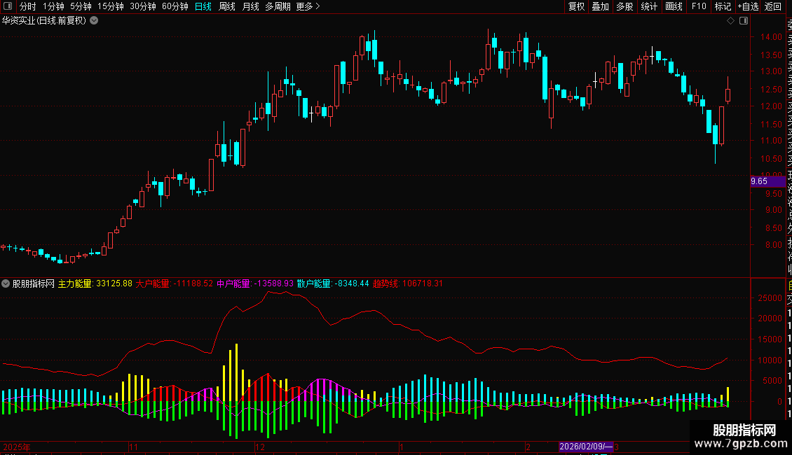 STICKLINE(中户能量< 0 AND 中户能量< REF(中户能量,1),2,2+中户能量,1/3,0),COLORGREEN;