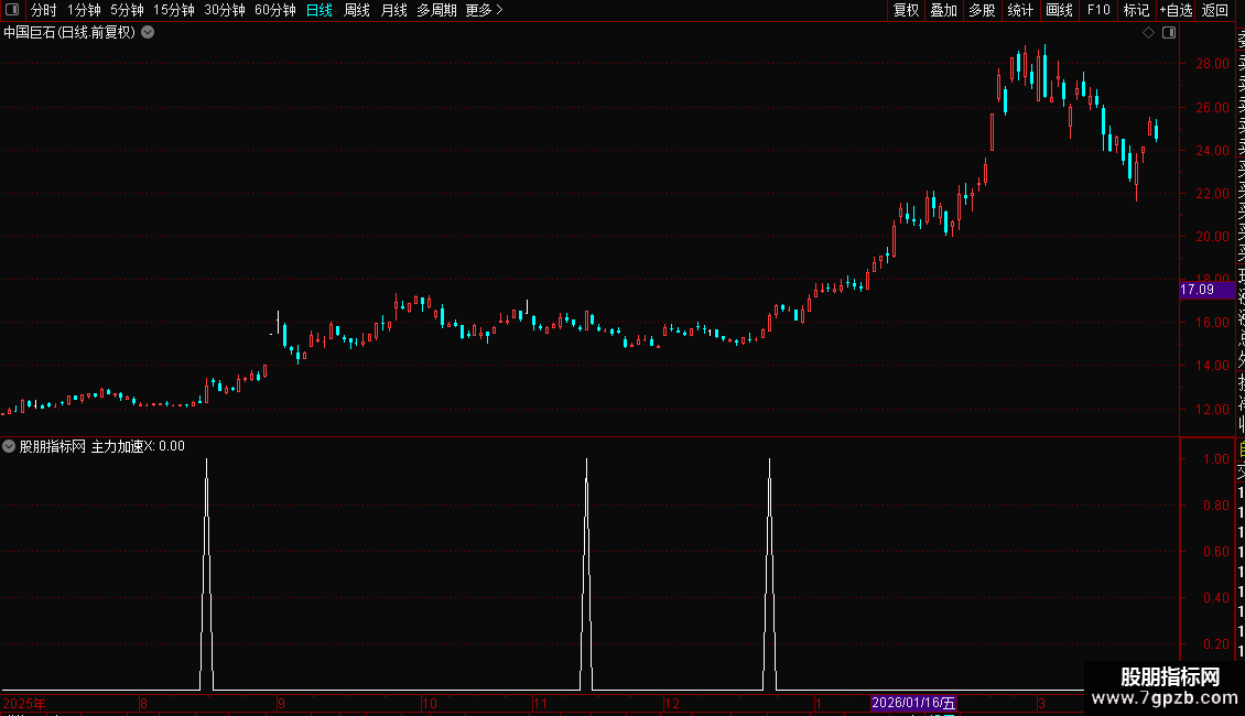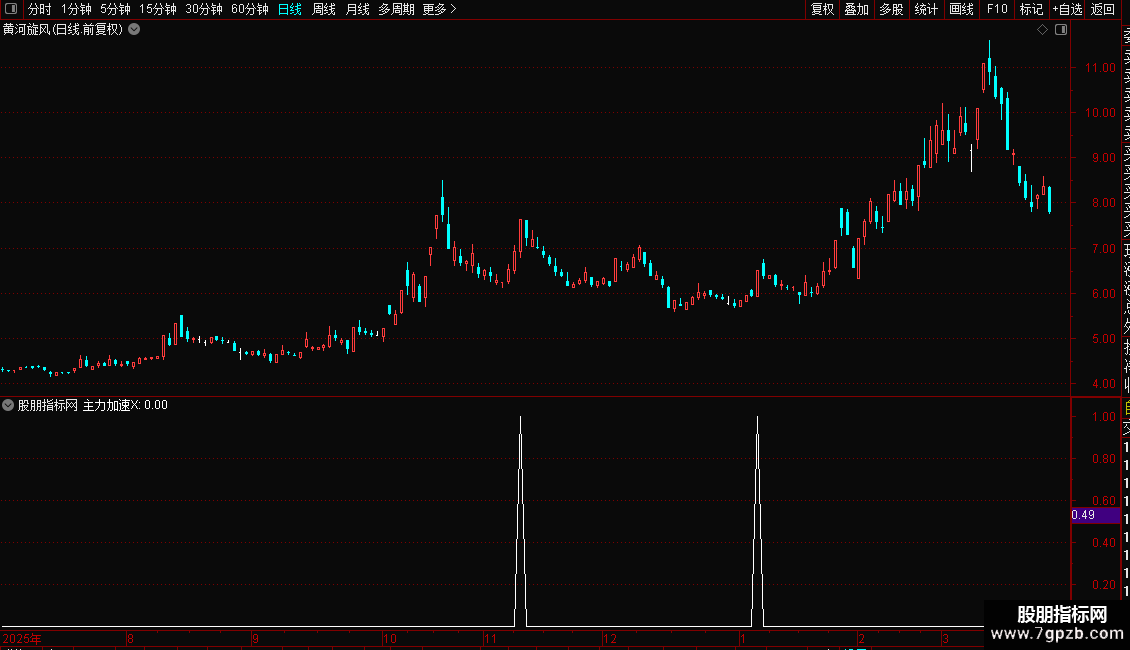 主力加速X:crOSS((XG13>XG14 AND XG9>XG11 AND XG8>REF(XG8,1)),0.5) AND XG6>XG7 AND (XG1-O)>=0.5;