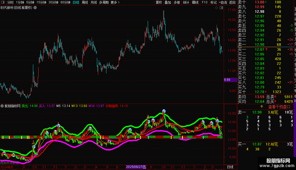 指标整合了趋势、动量、均线系统和形态识别,适用于中短线趋势跟踪和寻找买卖时机。