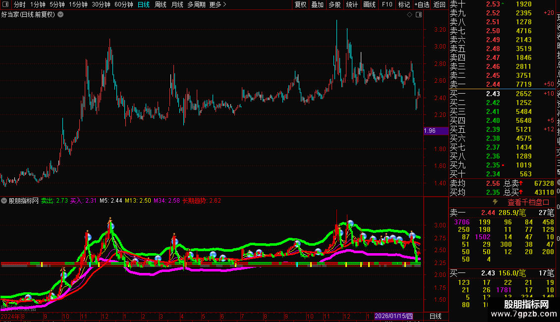2. 多空趋势:结合多条均线(如5、13、34、55、89、144日)和“长期趋势”线,判断市场整体多空方向。