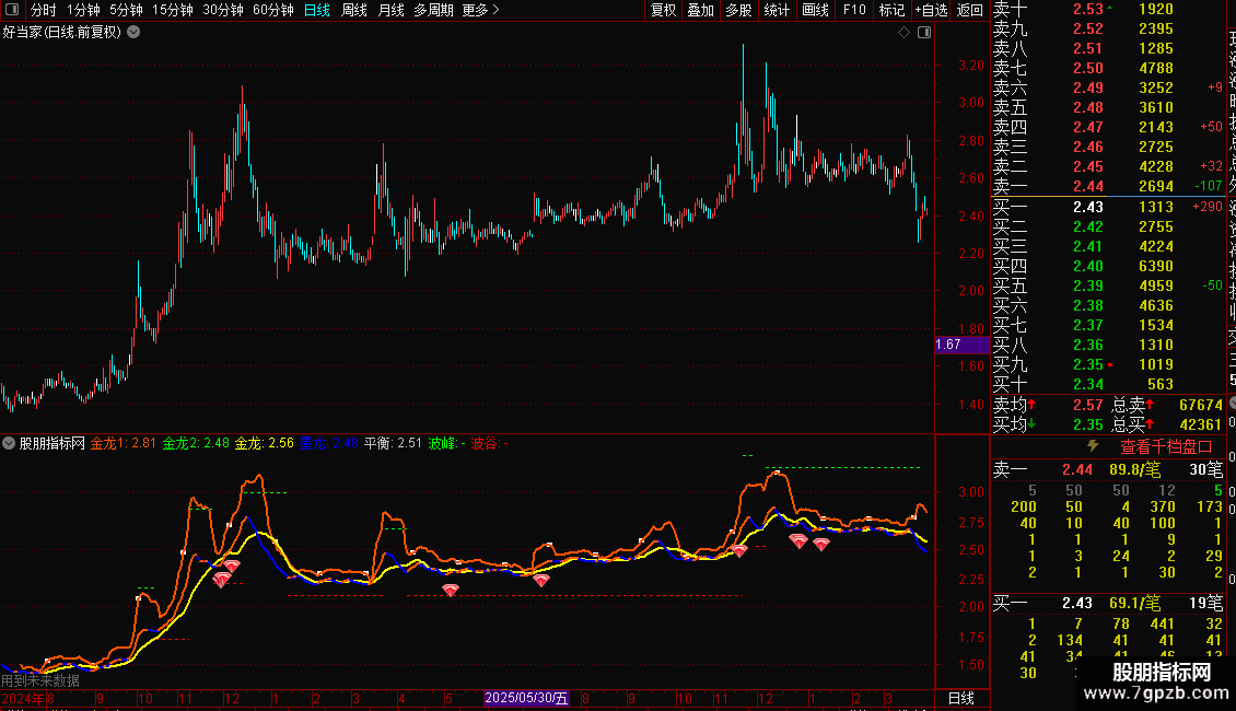 - 金龙2:收盘价的MM日指数移动平均线。