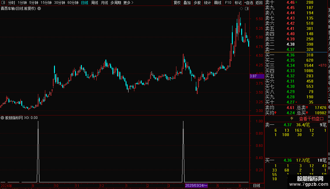 当以上三个条件同时满足时,公式输出选股信号(XG),提示可能存在短线强势上涨机会。指标主要用于捕捉伴随巨量突破关键压力位的启动点。