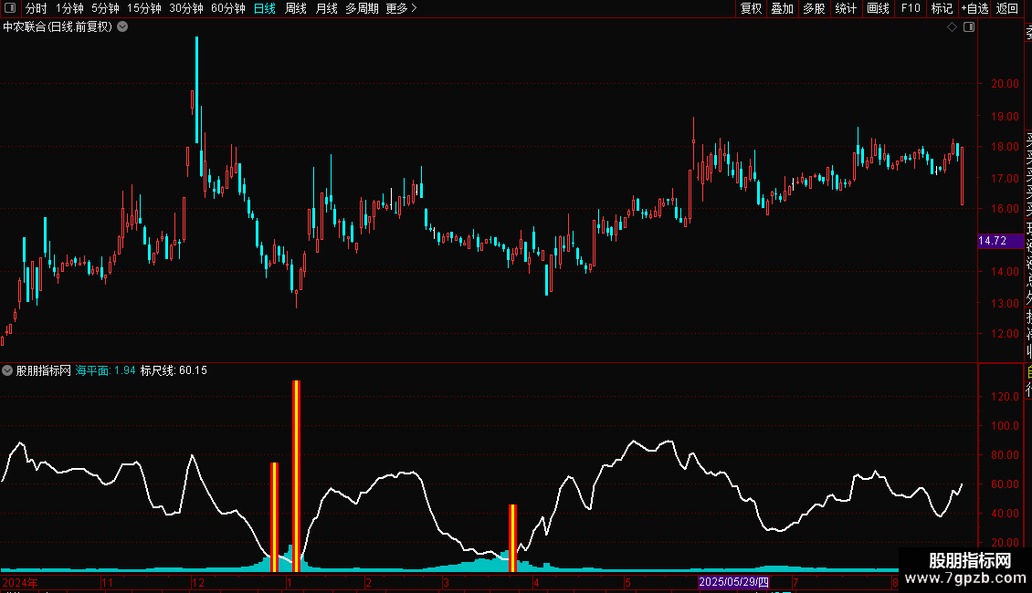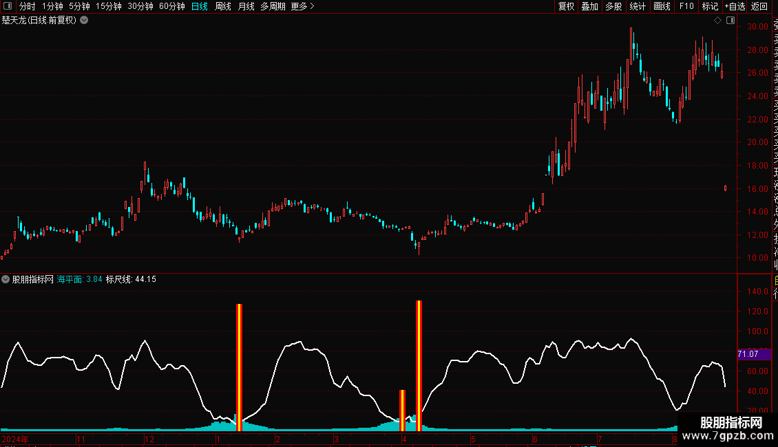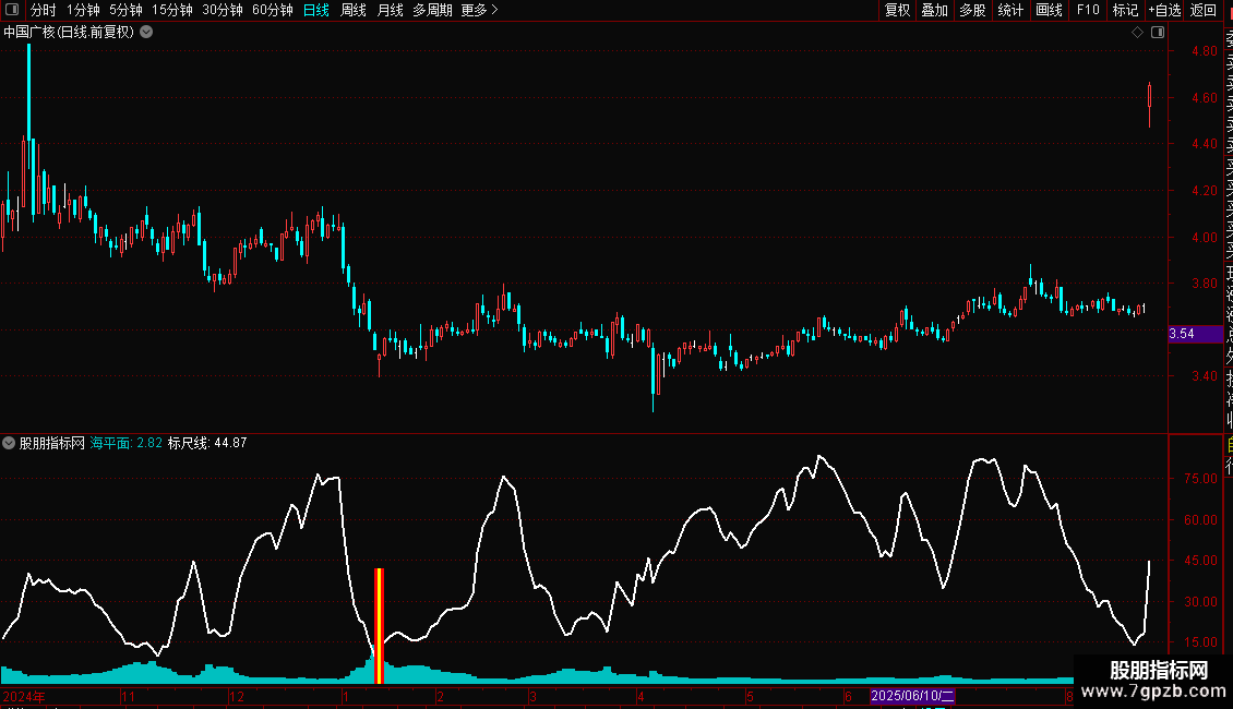这款指标主要用于捕捉主力资金介入的起涨点。它通过两条线(海平面与标尺线)的动态关系,配合底部红柱(航标灯)的出现,来判断市场趋势的转折。指标试图在股价处于相对低位且即将反转时发出强烈的买入信号,同时利用黄色柱体辅助确认趋势的延续性。
