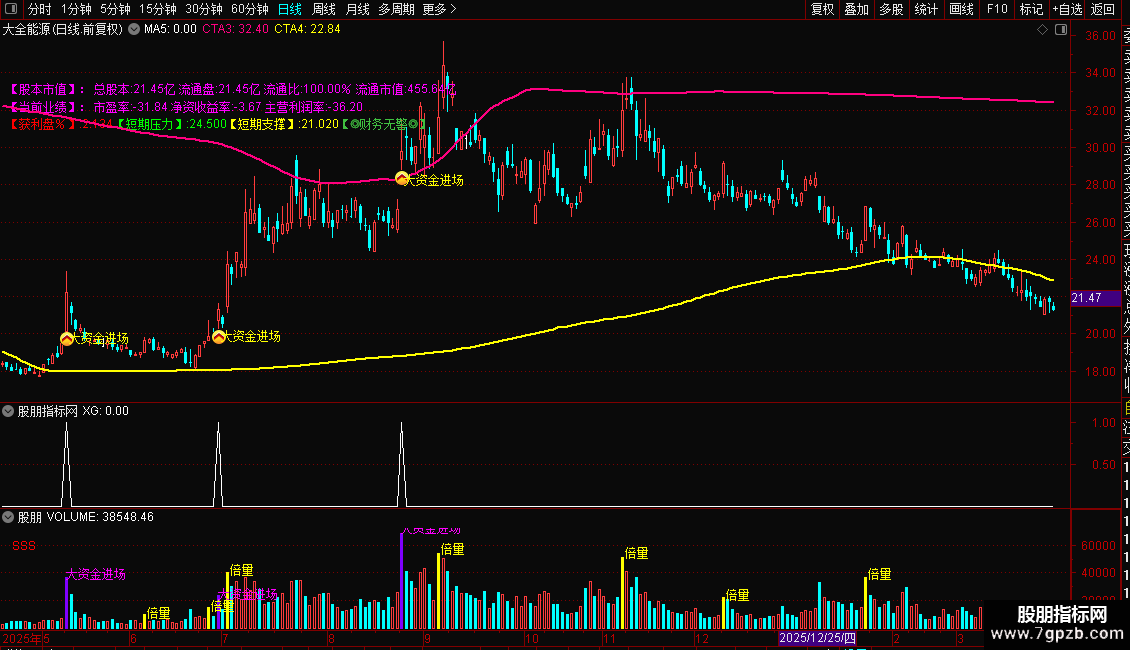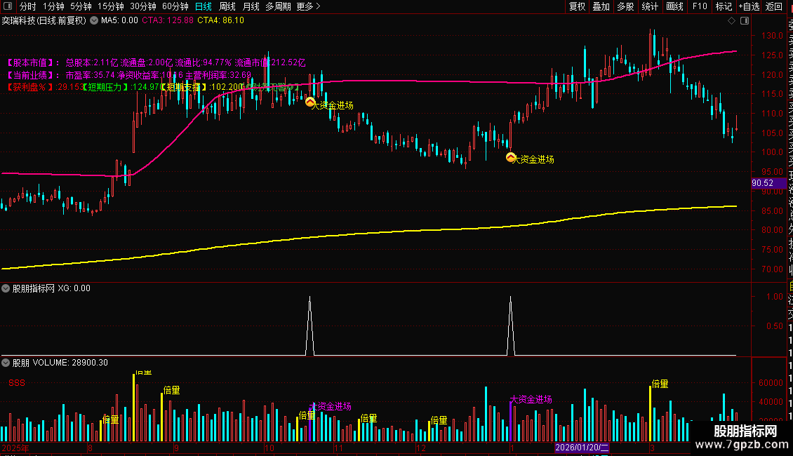 DRAWTEXT(XG, L*0.98, ' 大资金进场'),COLORYELLOW;