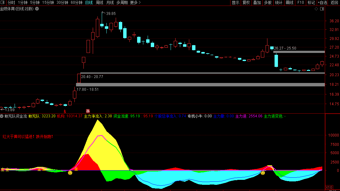 通达信【敢死队资金流】副图判断趋势强弱也适用于高位跑路源码