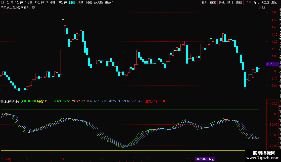 输出MOV3:MOV2的3日指数移动平均,COLORFFCC66,线宽为1