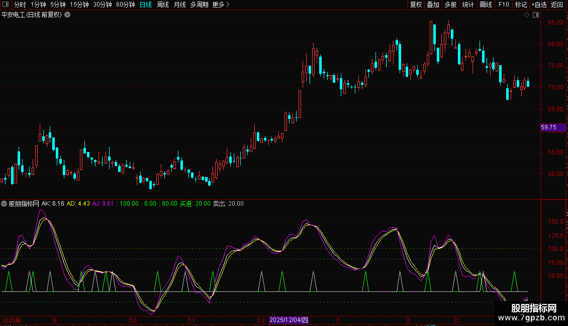3. AJ线:由AK和AD计算得出的辅助线,用于提前预判趋势变化。
