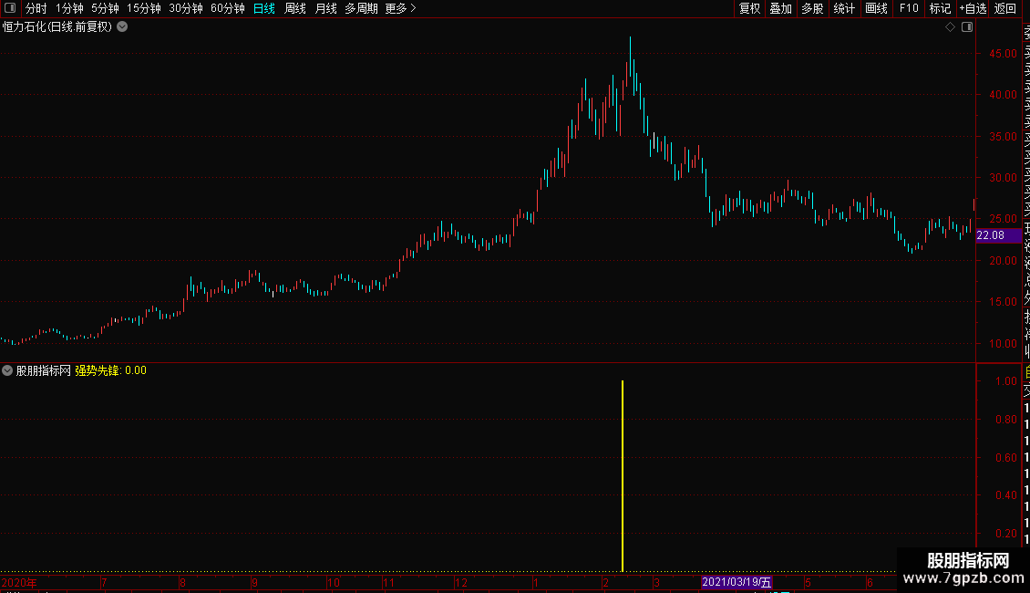 强势先锋指标是多周期均线的多头排列,同时配合斜率向上和乖离底背离等的多重过滤,精准捕捉趋势强势股的短线启动机会。