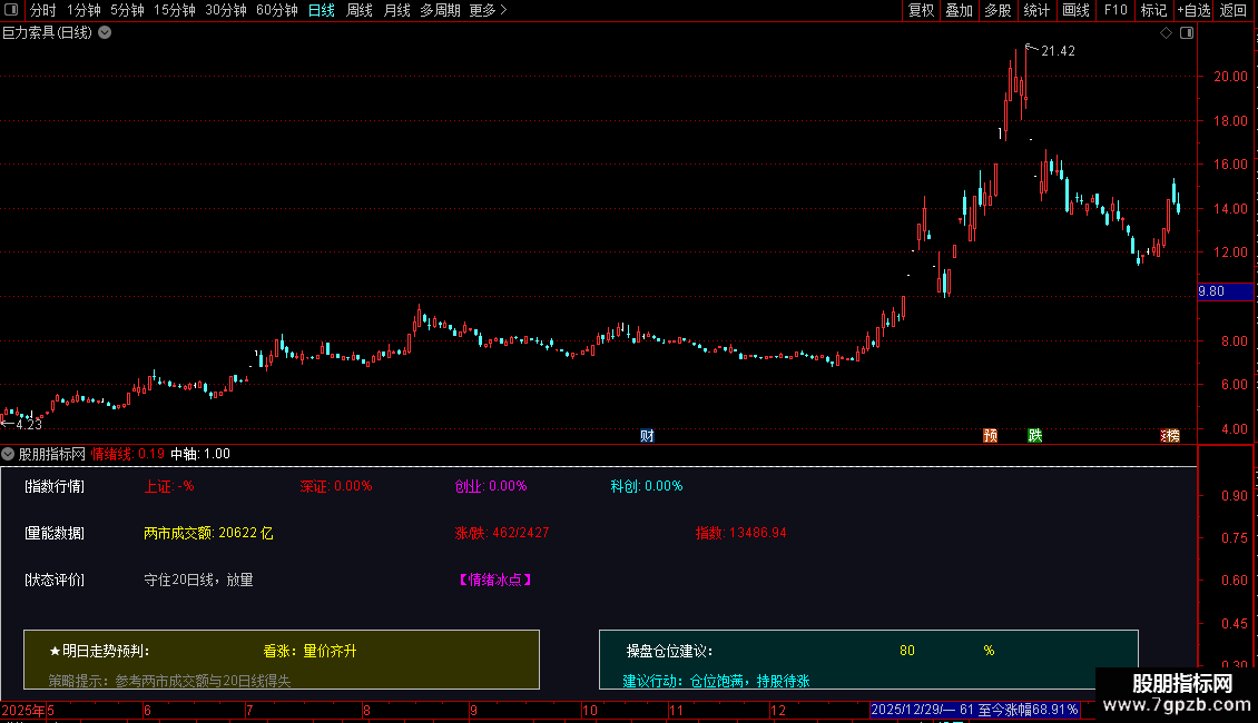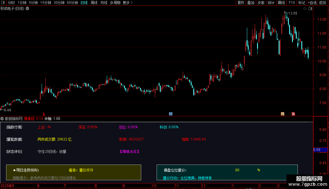 仓位提醒:=IF(最终仓位>=80,'仓位饱满,持股待涨',