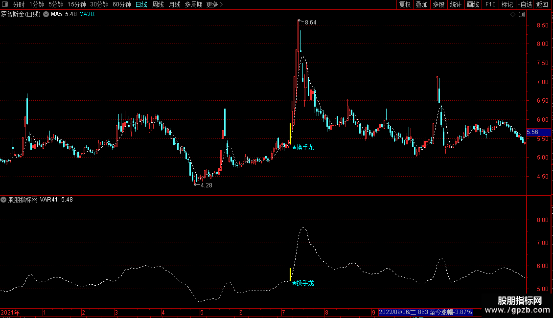 DRAWTEXT(VAR43,L*0.99,' ★换手龙'),COLORFFFF00;