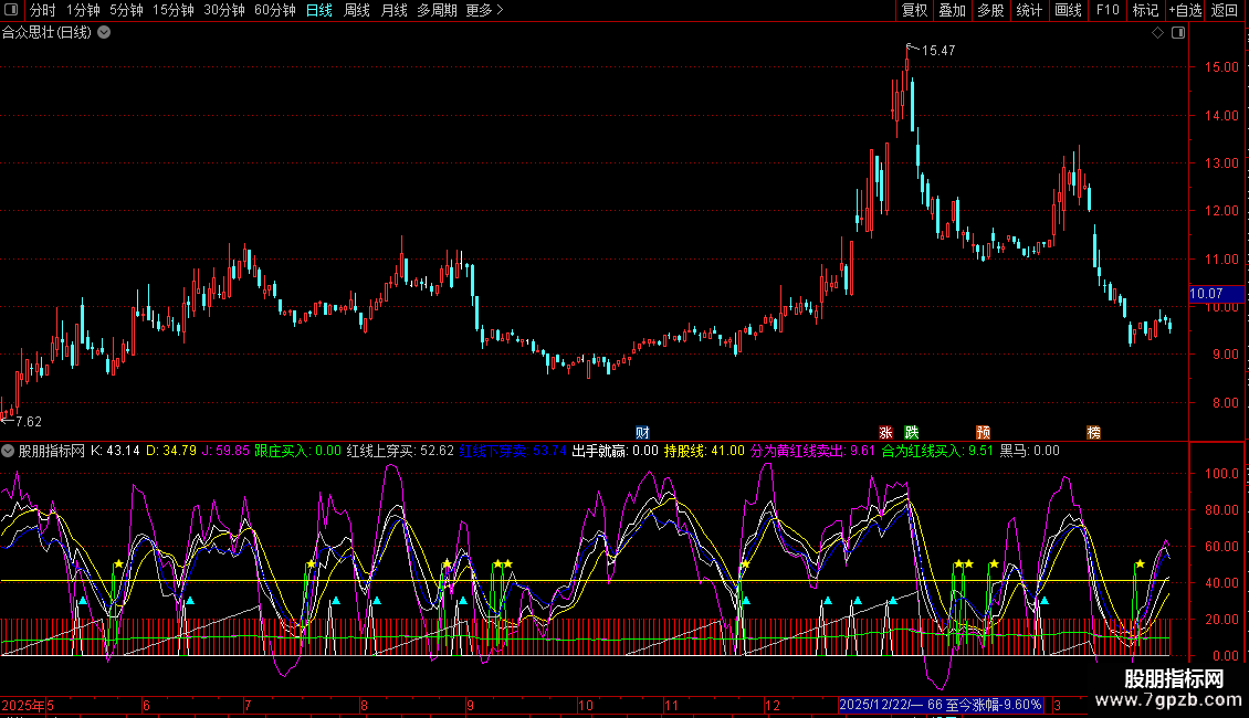 本指标是专为短线交易者打造的 实战型通达信指标 ,融合KDJ超跌信号、量价均线、黑马趋势度量三大核心逻辑,主打 双信号共振 与 黑马值趋势跟踪 ,精准识别主力建仓、股价反转节点,过滤无效杂波,轻松锁定低位启动黑马股,是短线抄底、跟庄吃肉的利器。