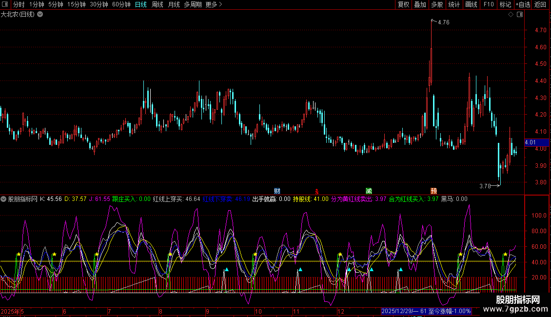 1. 跟庄买入:出现 黄色★信号 ,为KDJ超跌反转信号,低位企稳可轻仓试错;