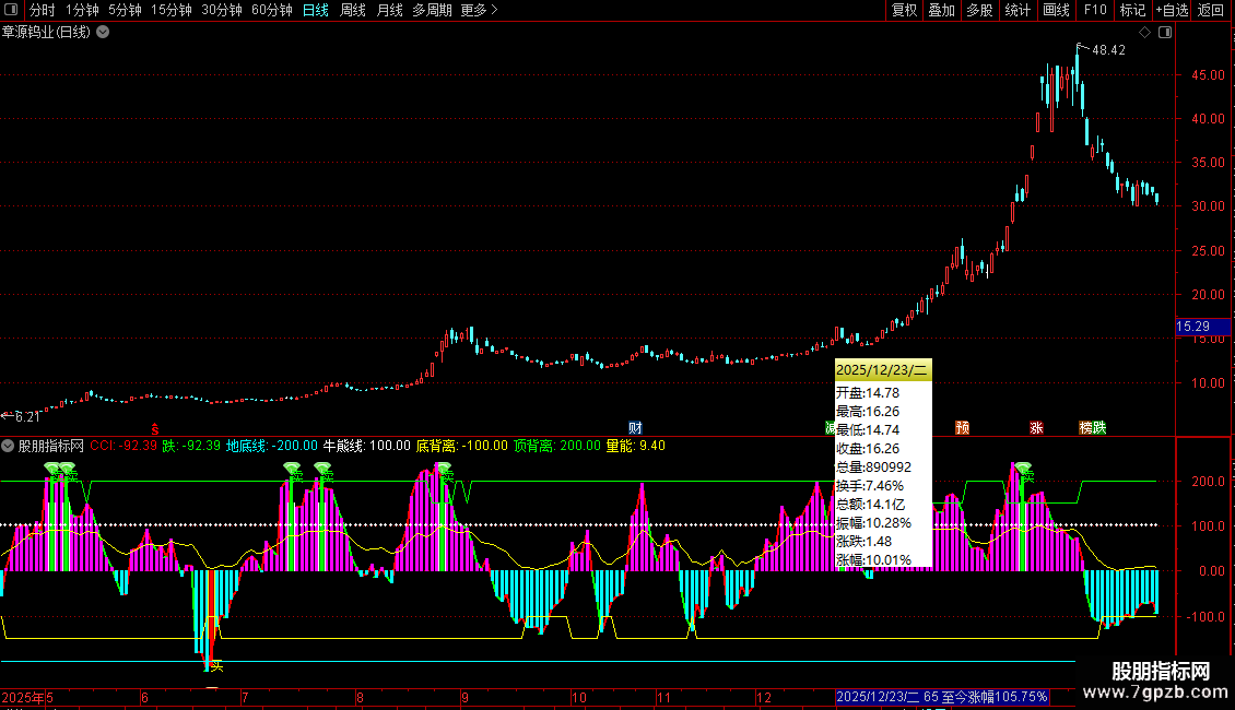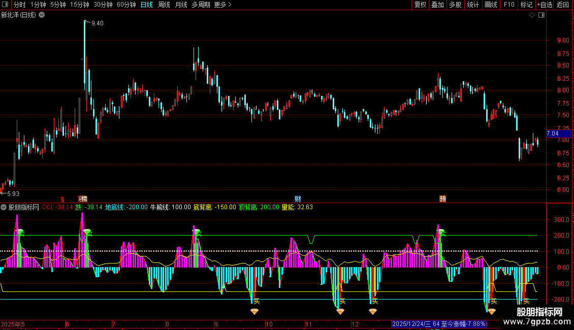 这是一个基于CCI(顺势指标)的设计指标,将传统CCI顺势指标进行深度可视化改造和精确信号强化的出色股票交易指标工具。