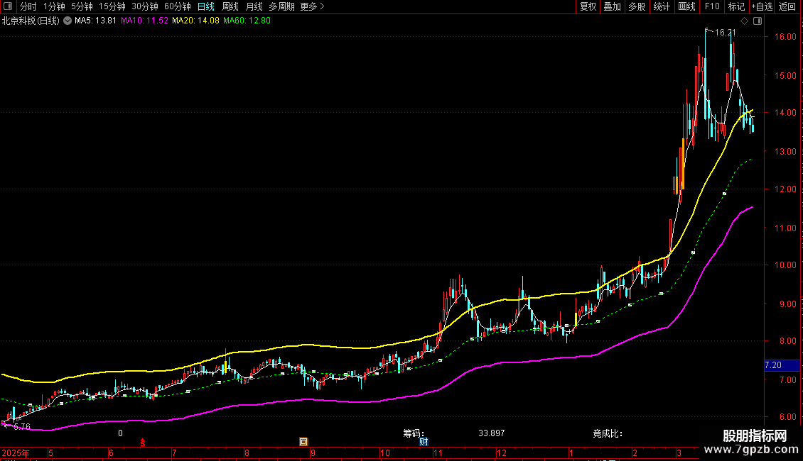 筹码峰:在主图上直接显示当前最主要的筹码密集区价格,帮助判断主力的成本位置。