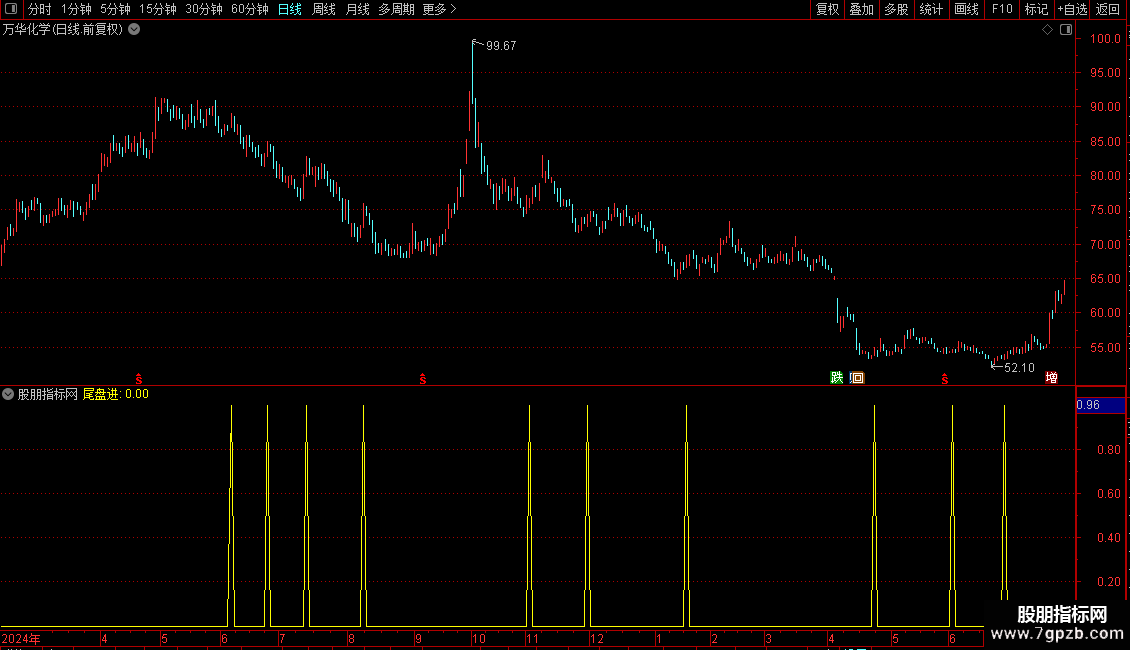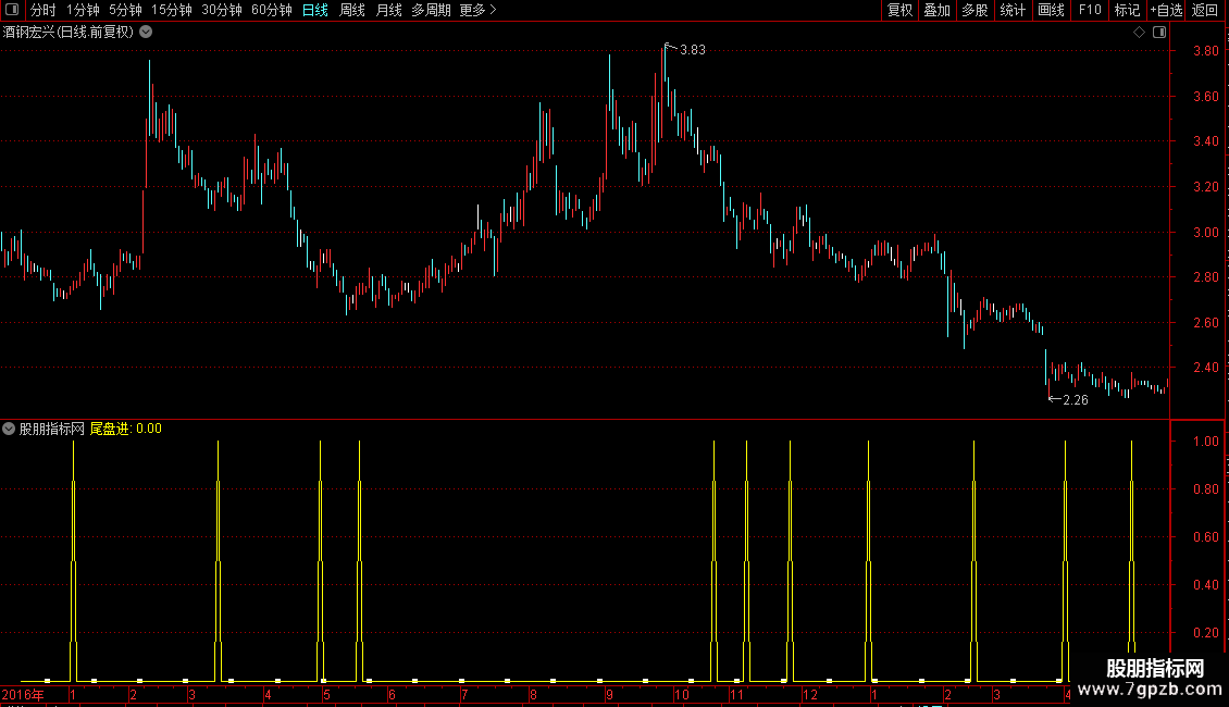 - 当两个条件同时满足时,发出“尾盘进”的黄色信号。