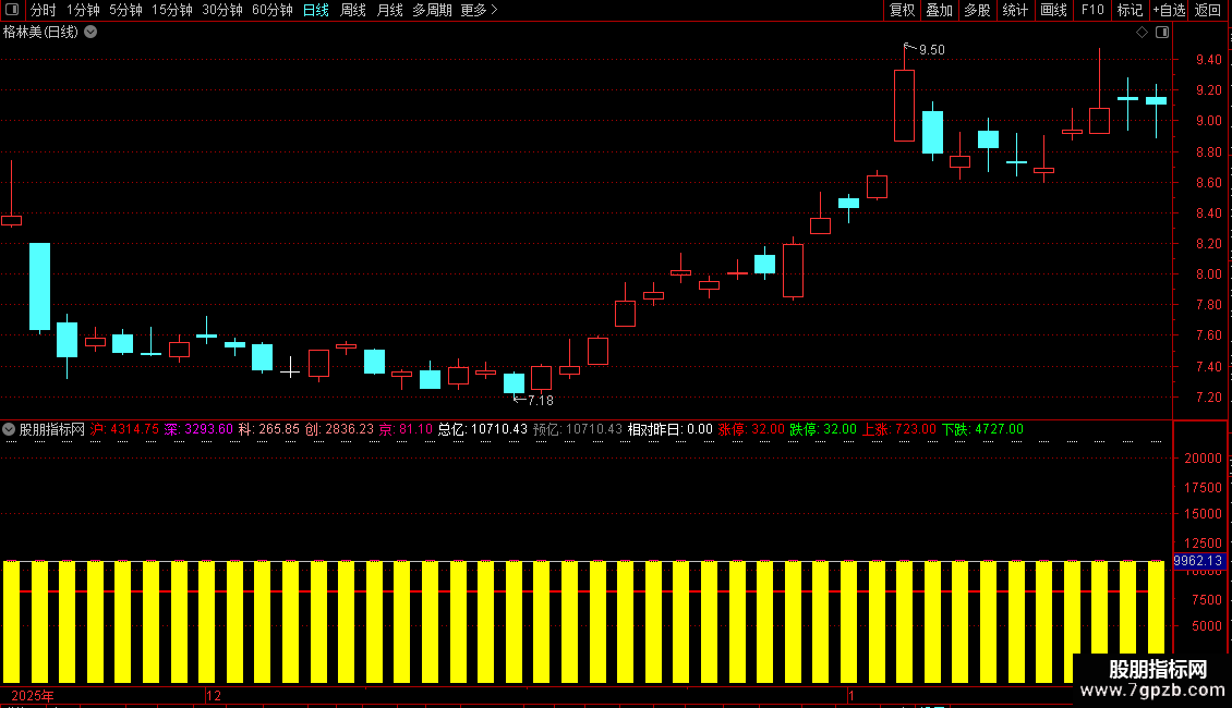 识别极端量能:当成交额出现历史级别的“天量”或“地量”时,指标会给出特殊标记,这通常是市场情绪达到极致、行情可能发生转折的信号。