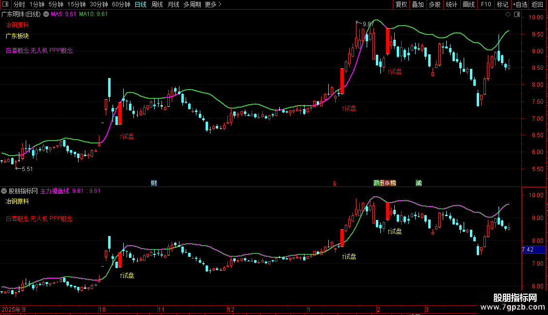 〖试盘Z之主力操盘线〗K线标注为“试盘”信号
