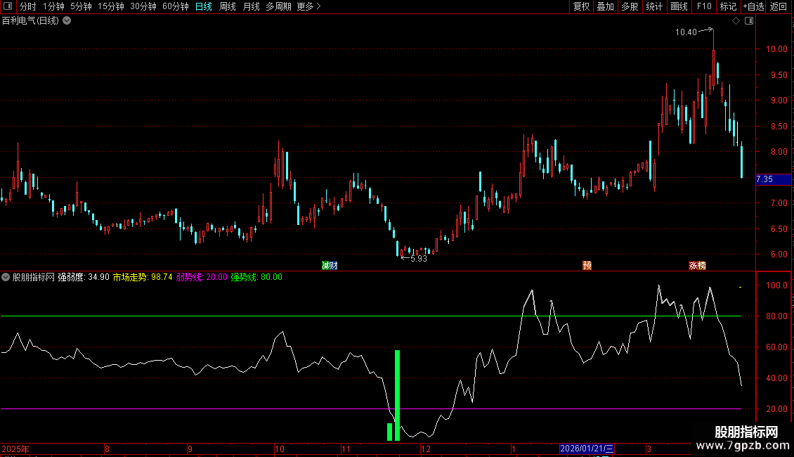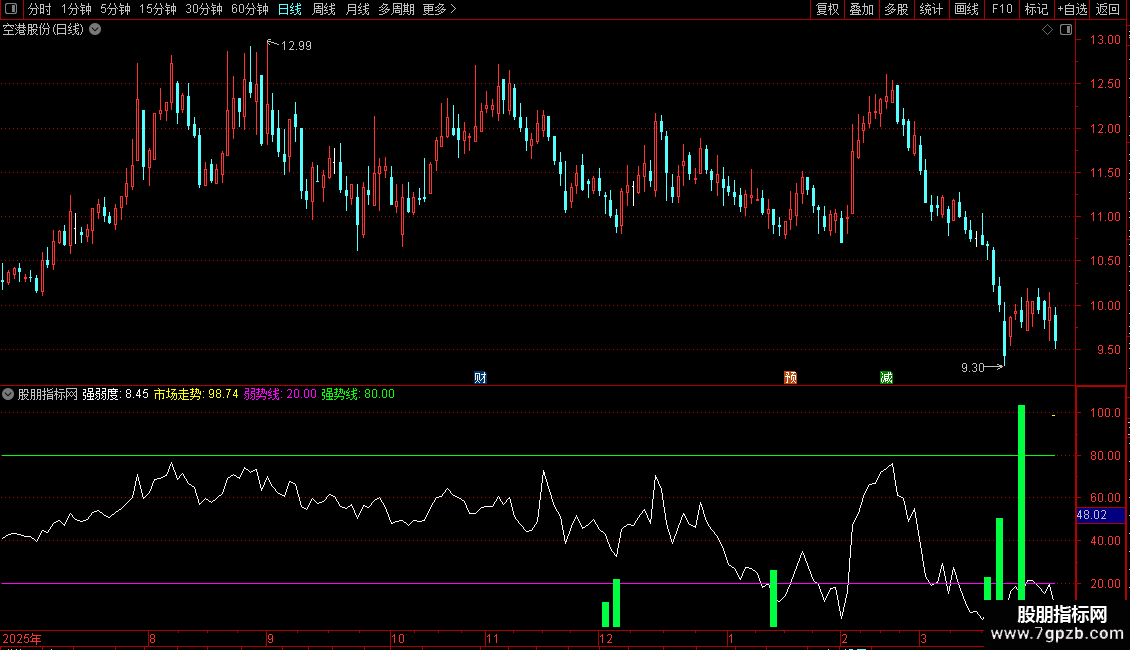 操作策略:重点关注指标在图表下方生成的柱状信号。当信号出现时,意味着股价可能已进入超卖区域,短期反弹概率增大。投资者可将其作为左侧交易的参考,在信号确认后择机介入,博取反弹收益。