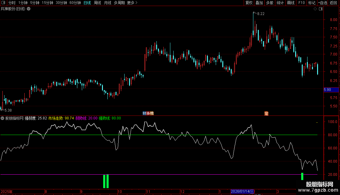 IF(强弱度>=80,强弱度,DRAWNULL),LINETHICK2;