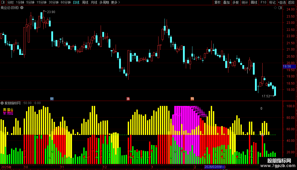DRAWTEXT(买入条件, 控盘度归一, '←买'), COLOR00FFFF;