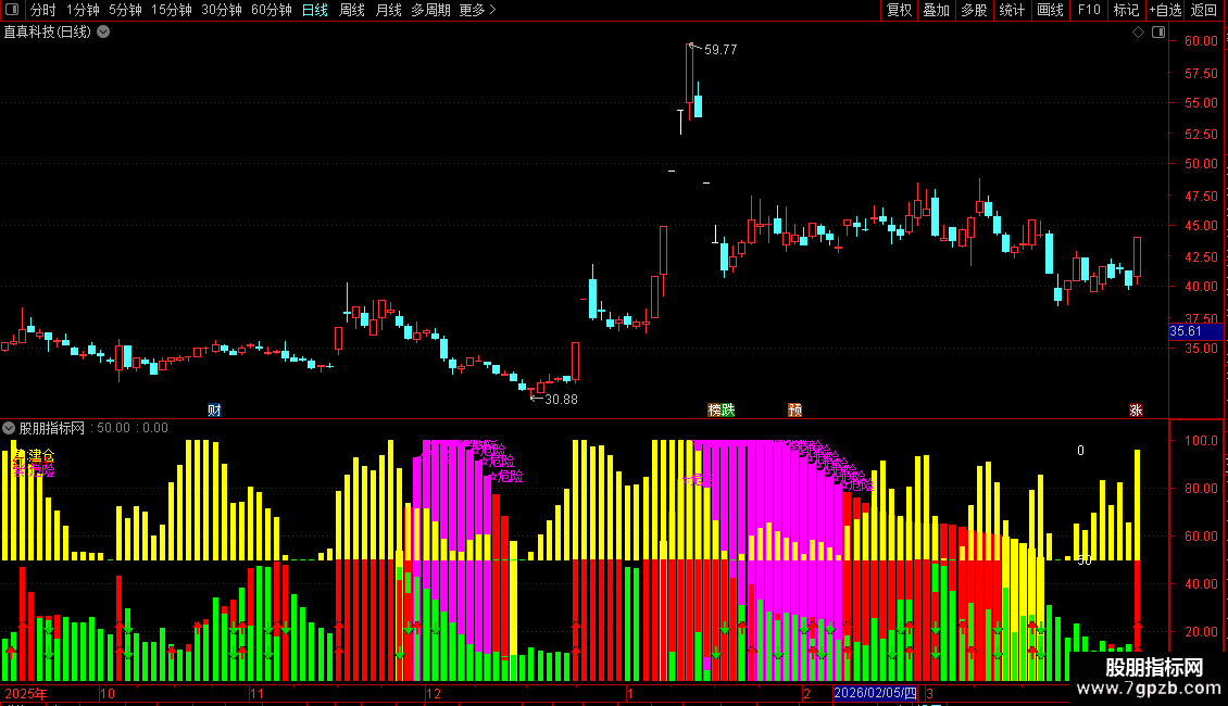 综合分 := (偏离度 + 偏离率 + 波动率 + 情绪平滑 + 动量2) / 5 + 41.25;