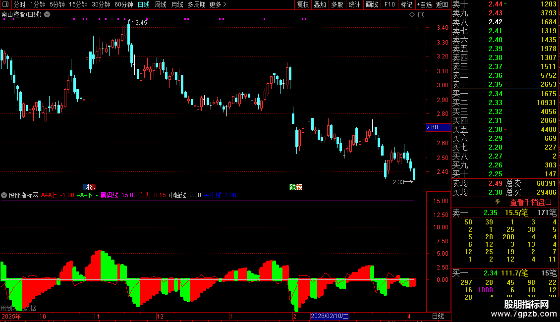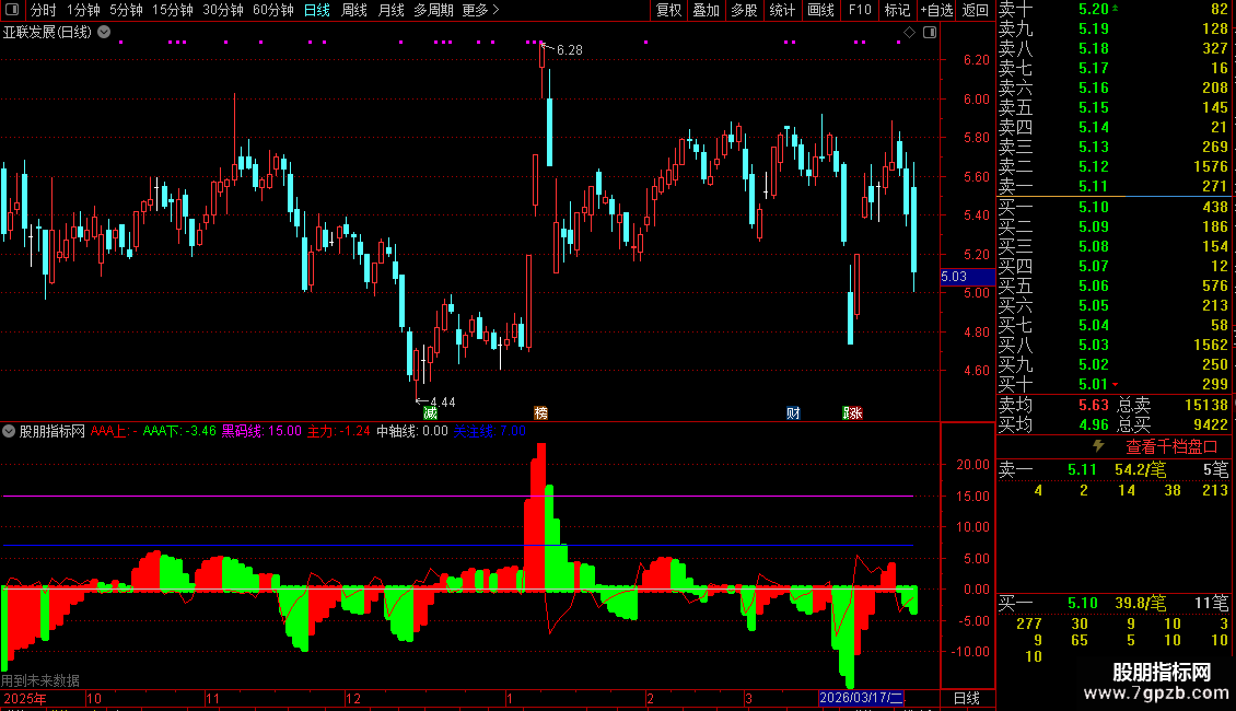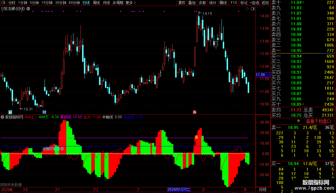 1. 主力能量柱:通过红绿柱状线(AAA上/AAA下)的放大显示,直观反映多空能量的强弱变化。