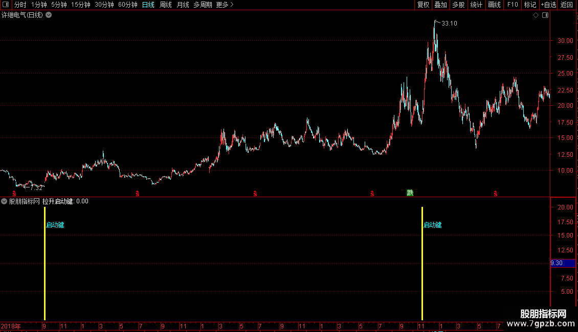 拉升启动键副图源码: